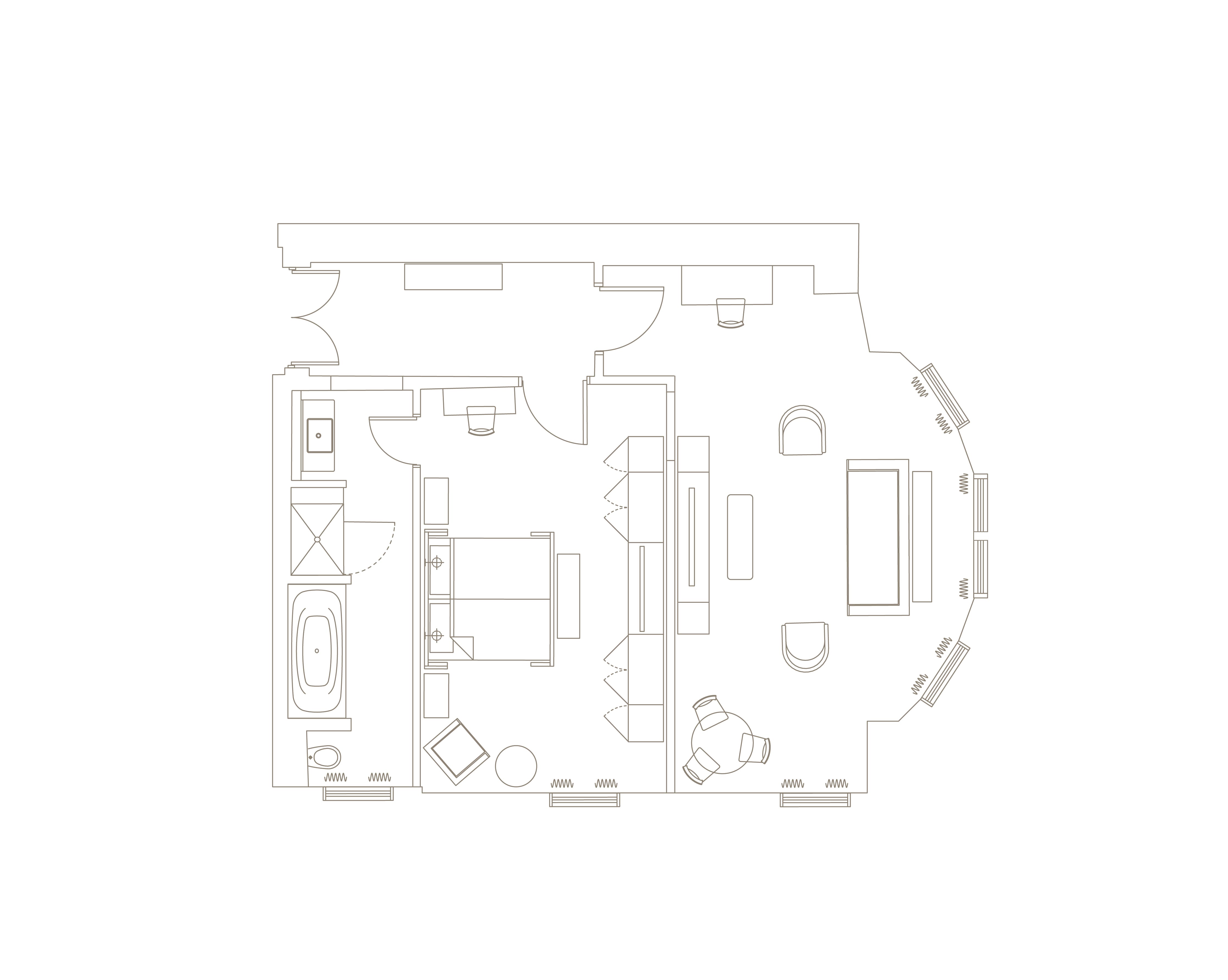 Named for and inspired by former patron of The Balmoral, The Queen Mother, born Elizabeth Bowes-Lyon, the Bowes-Lyon Suite aptly blends heritage and modernity, style and character. With its unusual layout and large, porthole-style windows, this suite is unique and full of character, much like its namesake.